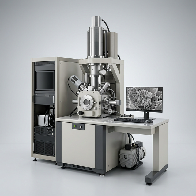 The field-emission scanning electron microscope delivers sub-nanometer resolution imaging across a wide range of accelerating voltages. Equipped with in-lens and SE2 detectors, EDS elemental analysis, and EBSD crystallography, it provides comprehensive morphological and compositional characterization of metals, ceramics, polymers, biological tissues, and nanomaterials.